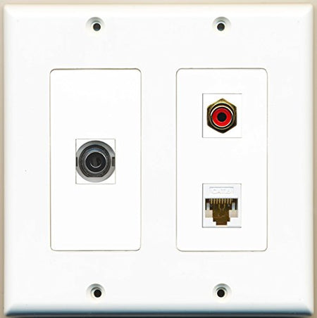 RiteAV - 1 Port RCA Red 1 Port 3.5mm 1 Port Cat6 Ethernet White - 2 Gang Wall Plate
