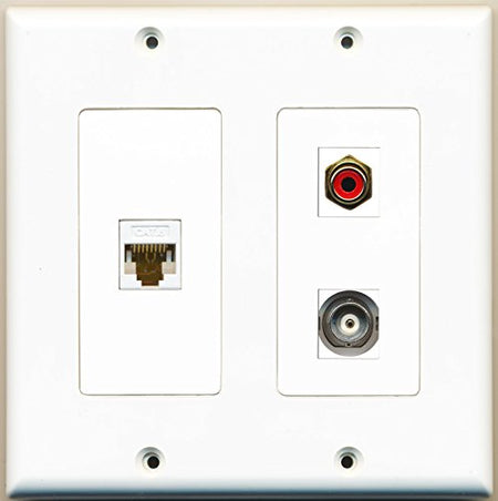 RiteAV - 1 Port RCA Red 1 Port BNC 1 Port Cat6 Ethernet White - 2 Gang Wall Plate