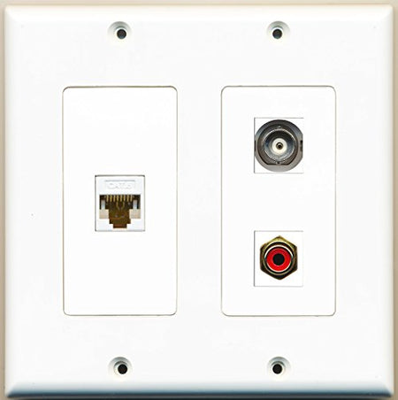 RiteAV - 1 Port RCA Red 1 Port BNC 1 Port Cat6 Ethernet White - 2 Gang Wall Plate