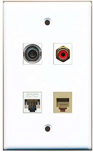 RiteAV - 1 Port RCA Red 1 Port Phone RJ11 RJ12 Beige 1 Port 3.5mm 1 Port Cat5e Ethernet White Wall Plate