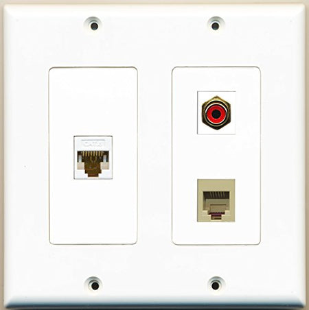 RiteAV - 1 Port RCA Red 1 Port Phone RJ11 RJ12 Beige 1 Port Cat6 Ethernet White - 2 Gang Wall Plate
