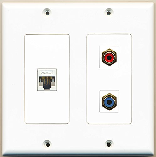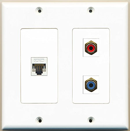 RiteAV - 1 Port RCA Red 1 Port RCA Blue 1 Port Cat5e Ethernet White - 2 Gang Wall Plate