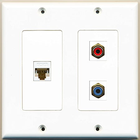 RiteAV - 1 Port RCA Red 1 Port RCA Blue 1 Port Cat6 Ethernet White - 2 Gang Wall Plate