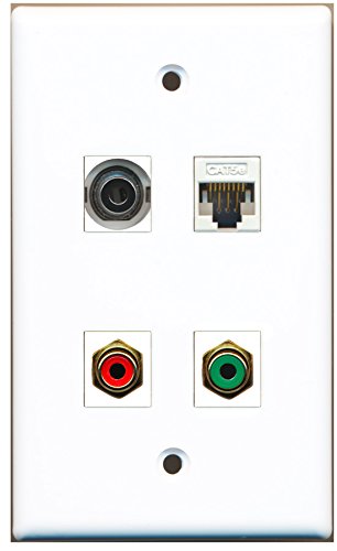 RiteAV - 1 Port RCA Red 1 Port RCA Green 1 Port 3.5mm 1 Port Cat5e Ethernet White Wall Plate