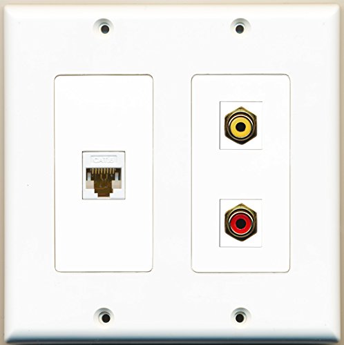 RiteAV - 1 Port RCA Red 1 Port RCA Yellow 1 Port Cat6 Ethernet White - 2 Gang Wall Plate