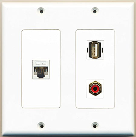 RiteAV - 1 Port RCA Red 1 Port USB A-A 1 Port Cat5e Ethernet White - 2 Gang Wall Plate
