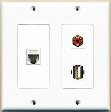 RiteAV - 1 Port RCA Red 1 Port USB A-A 1 Port Cat5e Ethernet White - 2 Gang Wall Plate
