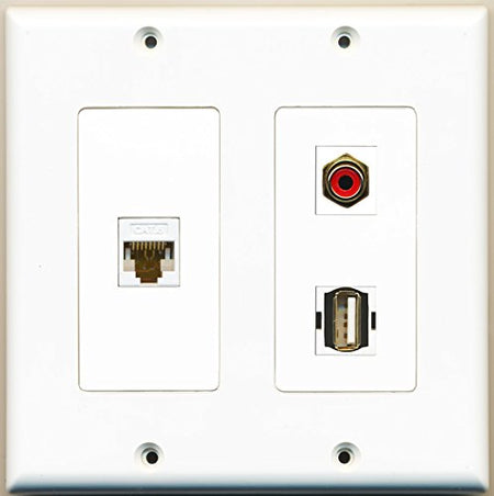 RiteAV - 1 Port RCA Red 1 Port USB A-A 1 Port Cat6 Ethernet White - 2 Gang Wall Plate