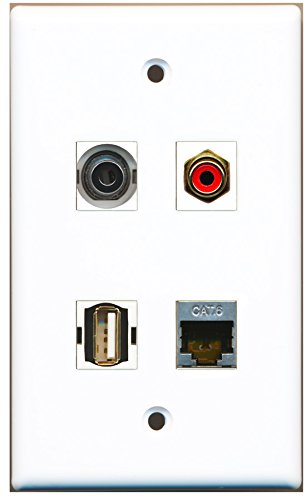 RiteAV - 1 Port RCA Red 1 Port USB A-A 1 Port Shielded Cat6 Ethernet 1 Port 3.5mm Wall Plate