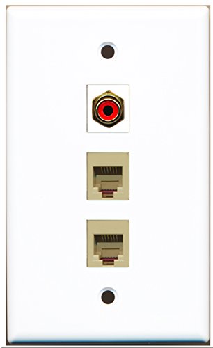 RiteAV - 1 Port RCA Red 2 Port Phone RJ11 RJ12 Beige Wall Plate