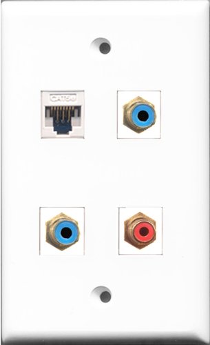 RiteAV 1 Port RCA Red 2 Port RCA Blue and 1 Port Cat5e Ethernet White Wall Plate
