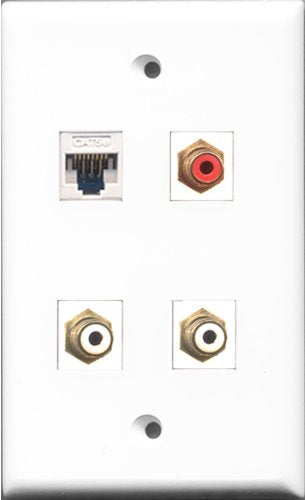 RiteAV 1 Port RCA Red 2 Port RCA White and 1 Port Cat5e Ethernet White Wall Plate