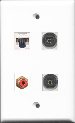 RiteAV 1 Port RCA Red 2 Port Toslink and 1 Port Cat5e Ethernet White Wall Plate