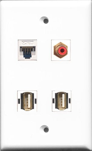 RiteAV 1 Port RCA Red 2 Port USB A-A and 1 Port Cat5e Ethernet White Wall Plate
