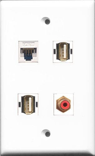 RiteAV 1 Port RCA Red 2 Port USB A-A and 1 Port Cat5e Ethernet White Wall Plate