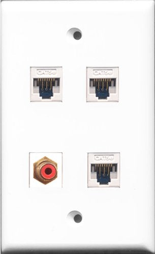 RiteAV - 1 Port RCA Red 3 Port Cat5e Ethernet White Wall Plate