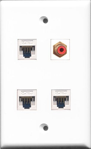 RiteAV 1 Port RCA Red 3 Port Cat5e Ethernet White Wall Plate