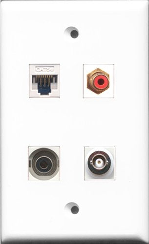 RiteAV 1 Port RCA Red and 1 Port 3.5mm and 1 Port BNC and 1 Port Cat5e Ethernet White Wall Plate
