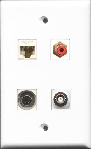 RiteAV - and 1 Port RCA Red and 1 Port 3.5mm and 1 Port BNC and 1 Port Cat6 Ethernet White Wall Plate