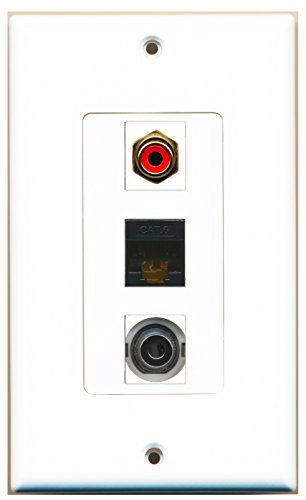 RiteAV - 1 Port RCA Red and 1 Port 3.5mm and 1 Port Cat6 Ethernet Black Decorative Wall Plate Decorative