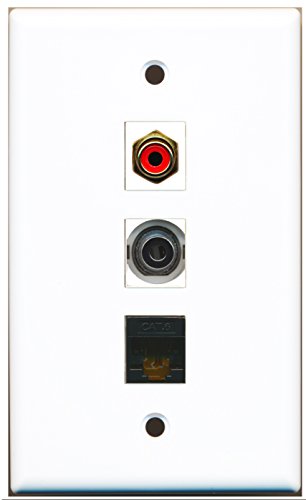 RiteAV - 1 Port RCA Red and 1 Port 3.5mm and 1 Port Cat6 Ethernet Black Wall Plate