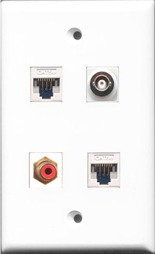 RiteAV - 1 Port RCA Red and 1 Port BNC 2 Port Cat5e Ethernet White Wall Plate
