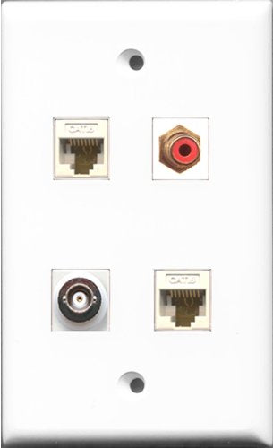 RiteAV 1 Port RCA Red and 1 Port BNC 2 Port Cat6 Ethernet White Wall Plate