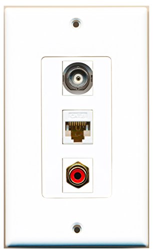 RiteAV - 1 Port RCA Red and 1 Port BNC and 1 Port Cat6 Ethernet White Decorative Wall Plate Decorative