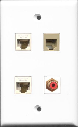RiteAV 1 Port RCA Red and 1 Port Phone RJ11 RJ12 Beige 2 Port Cat6 Ethernet White Wall Plate