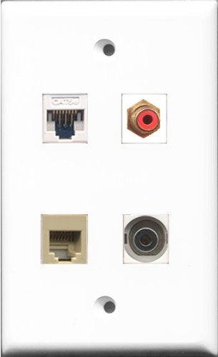 RiteAV 1 Port RCA Red and 1 Port Phone RJ11 RJ12 Beige and 1 Port 3.5mm and 1 Port Cat5e Ethernet White Wall Plate