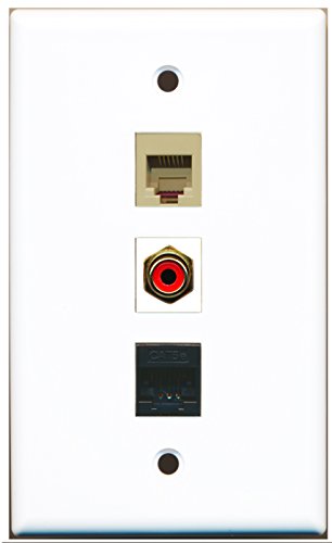 RiteAV - 1 Port RCA Red and 1 Port Phone RJ11 RJ12 Beige and 1 Port Cat5e Ethernet Black Wall Plate