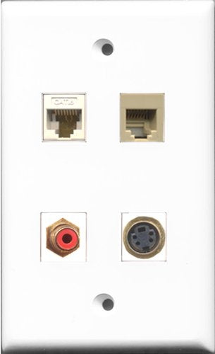 RiteAV 1 Port RCA Red and 1 Port Phone RJ11 RJ12 Beige and 1 Port S-Video and 1 Port Cat6 Ethernet White Wall Plate