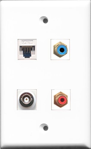 RiteAV 1 Port RCA Red and 1 Port RCA Blue and 1 Port BNC and 1 Port Cat5e Ethernet White Wall Plate
