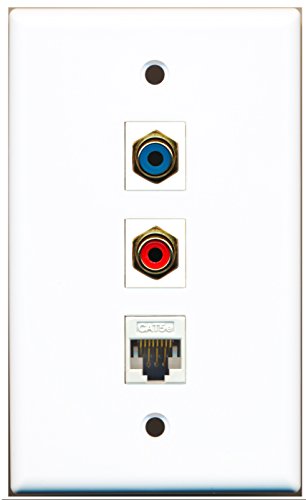 RiteAV - 1 Port RCA Red and 1 Port RCA Blue and 1 Port Cat5e Ethernet White Wall Plate