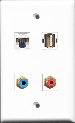 RiteAV 1 Port RCA Red and 1 Port RCA Blue and 1 Port USB A-A and 1 Port Cat5e Ethernet White Wall Plate