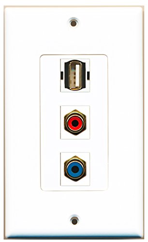 RiteAV - 1 Port RCA Red and 1 Port RCA Blue and 1 Port USB A-A Decorative Wall Plate Decorative