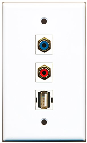 RiteAV - 1 Port RCA Red and 1 Port RCA Blue and 1 Port USB A-A Wall Plate