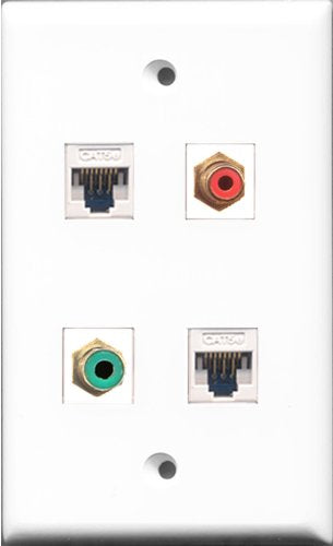 RiteAV 1 Port RCA Red and 1 Port RCA Green 2 Port Cat5e Ethernet White Wall Plate