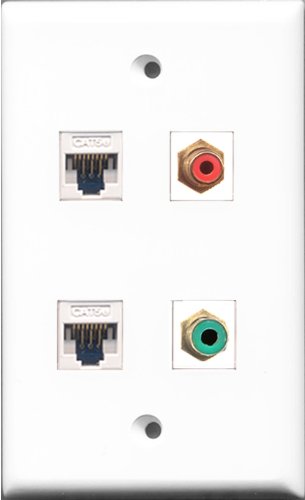 RiteAV 1 Port RCA Red and 1 Port RCA Green 2 Port Cat5e Ethernet White Wall Plate
