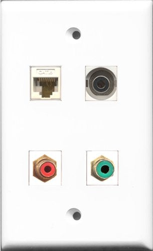 RiteAV 1 Port RCA Red and 1 Port RCA Green and 1 Port 3.5mm and 1 Port Cat6 Ethernet White Wall Plate
