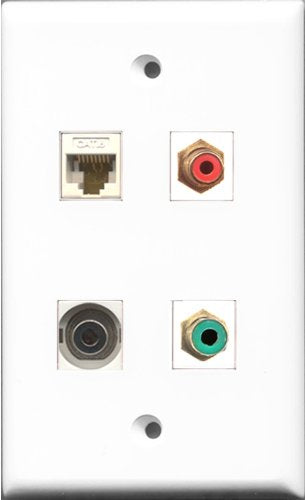 RiteAV 1 Port RCA Red and 1 Port RCA Green and 1 Port 3.5mm and 1 Port Cat6 Ethernet White Wall Plate