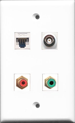 RiteAV - 1 Port RCA Red and 1 Port RCA Green and 1 Port BNC and 1 Port Cat5e Ethernet White Wall Plate