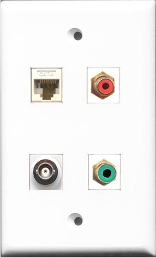 RiteAV 1 Port RCA Red and 1 Port RCA Green and 1 Port BNC and 1 Port Cat6 Ethernet White Wall Plate