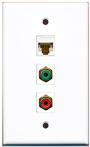 RiteAV - 1 Port RCA Red and 1 Port RCA Green and 1 Port Cat6 Ethernet White Wall Plate