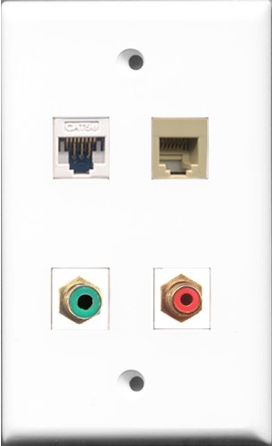 RiteAV - and 1 Port RCA Red and 1 Port RCA Green and 1 Port Phone RJ11 RJ12 Beige and 1 Port Cat5e Ethernet White Wall Plate
