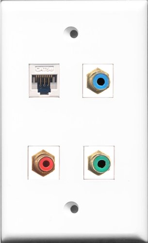 RiteAV 1 Port RCA Red and 1 Port RCA Green and 1 Port RCA Blue and 1 Port Cat5e Ethernet White Wall Plate