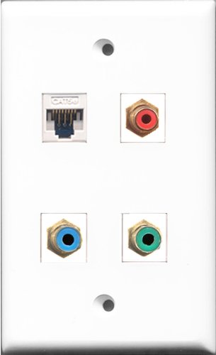 RiteAV 1 Port RCA Red and 1 Port RCA Green and 1 Port RCA Blue and 1 Port Cat5e Ethernet White Wall Plate