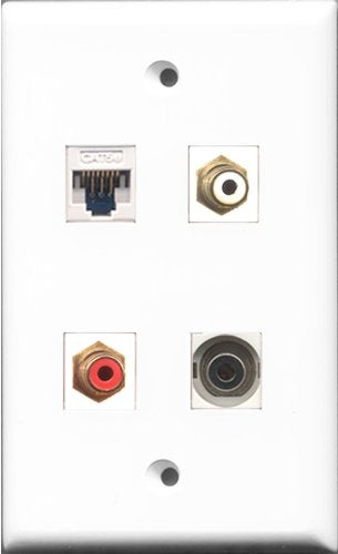 RiteAV 1 Port RCA Red and 1 Port RCA White and 1 Port 3.5mm and 1 Port Cat5e Ethernet White Wall Plate