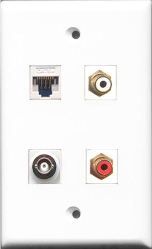 RiteAV 1 Port RCA Red and 1 Port RCA White and 1 Port BNC and 1 Port Cat5e Ethernet White Wall Plate