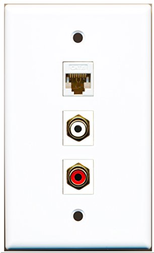 RiteAV - 1 Port RCA Red and 1 Port RCA White and 1 Port Cat6 Ethernet White Wall Plate